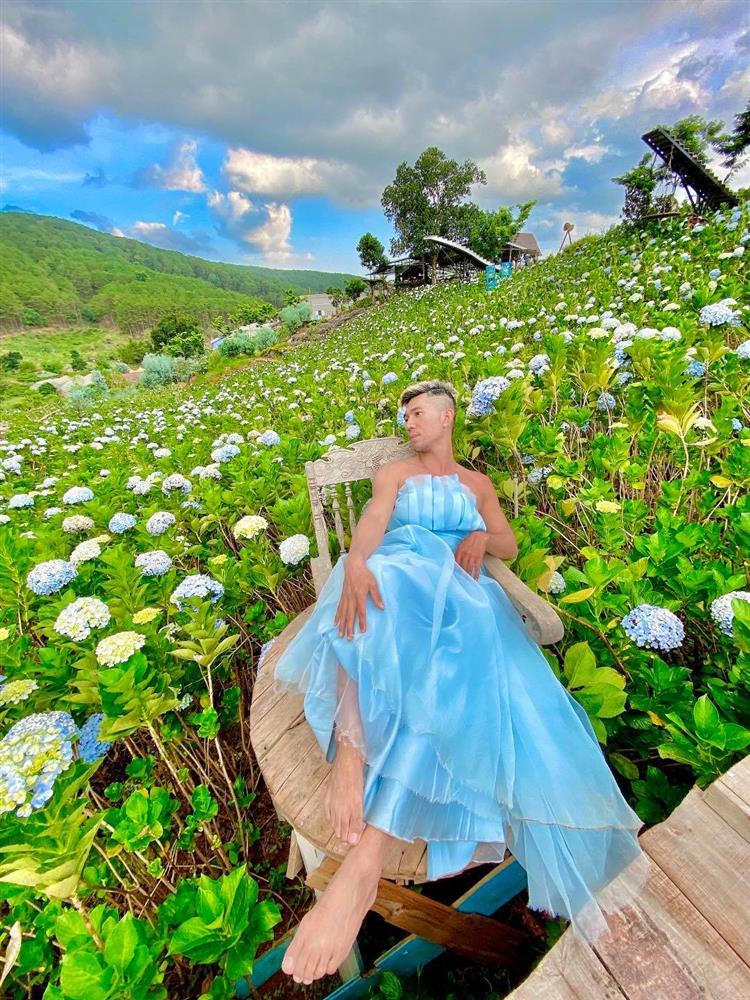 Lương Bằng Quang khiến cộng đồng mạng ngao ngán khi tung những bức ảnh mình mặc váy voan bồng bềnh, kiểu dáng cúp ngực và chụp loạt khoảnh khắc giữa đồi hoa Đà Lạt.