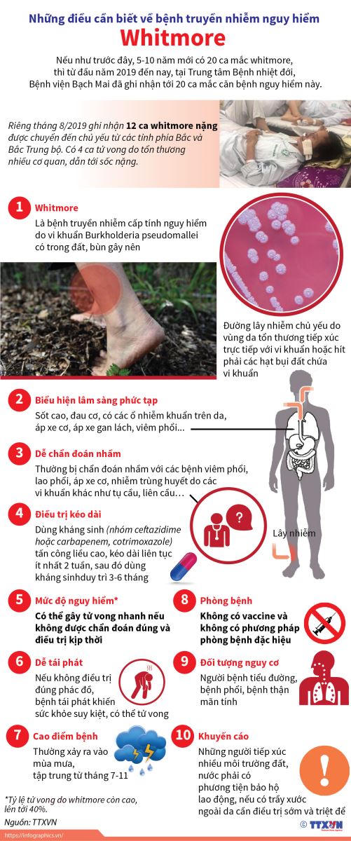 (PLVN) - Bệnh Whitmore không có biểu hiện giống như các loại nhiễm trùng khác, khi chọc dịch, làm test nhanh xét nghiệm, ở thời gian đầu không phát hiện ra vi khuẩn, đây là căn bệnh chưa có vắc-xin phòng.