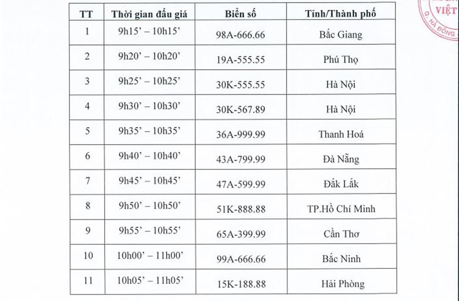 Danh sách 11 biển số siêu đẹp được đấu giá phiên đầu tiên |