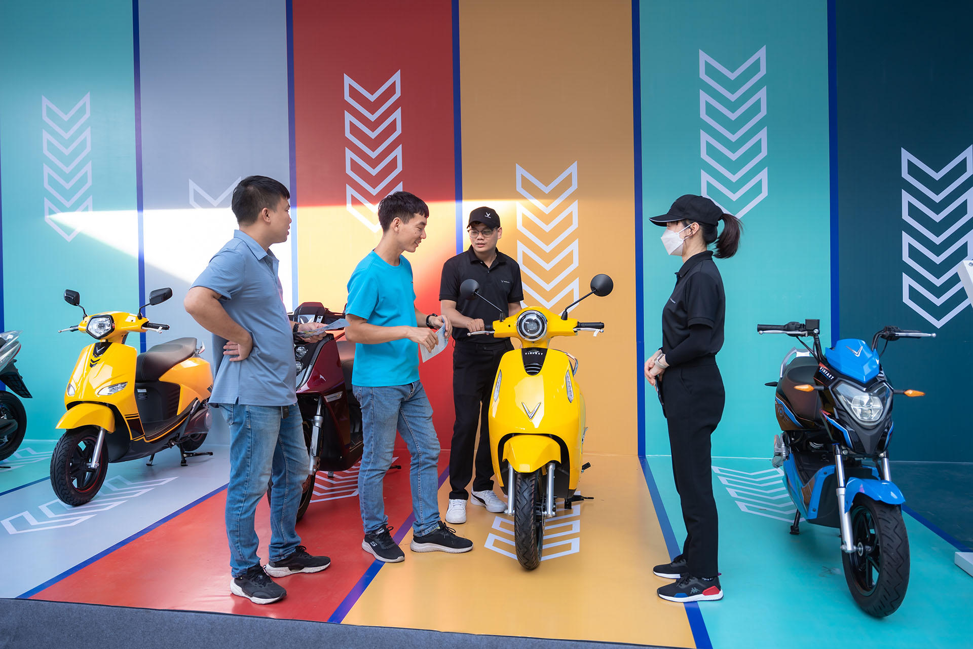 Dải xe máy điện VinFast được trưng bày tại chuỗi triển lãm “VinFast – Vì tương lai xanh”