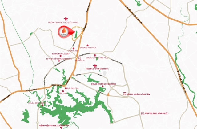 Trong bán kính 5km cư dân còn dễ dàng tiếp cận với hệ thống y tế, giáo dục hàng đầu của tỉnh bao gồm: Trường Chuyên Vĩnh Phúc, Trường CĐ Nghề Vĩnh Phúc, Bệnh viện Y học Cổ truyền Vĩnh Phúc, Bệnh viện Hữu nghị Lạc Việt,….