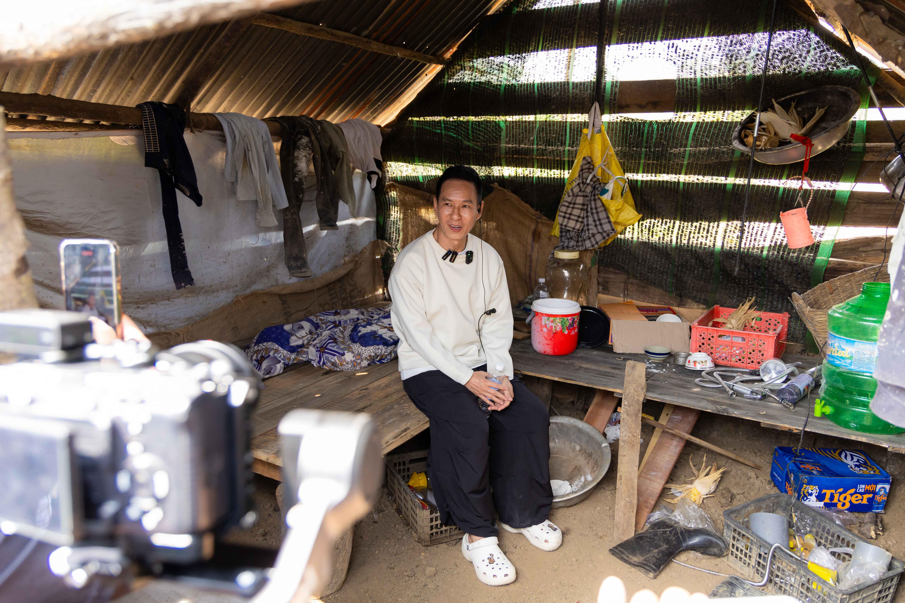 Lý Hải trong căn nhà của ba Dẹo, được tận dụng từ chuồng gà. |