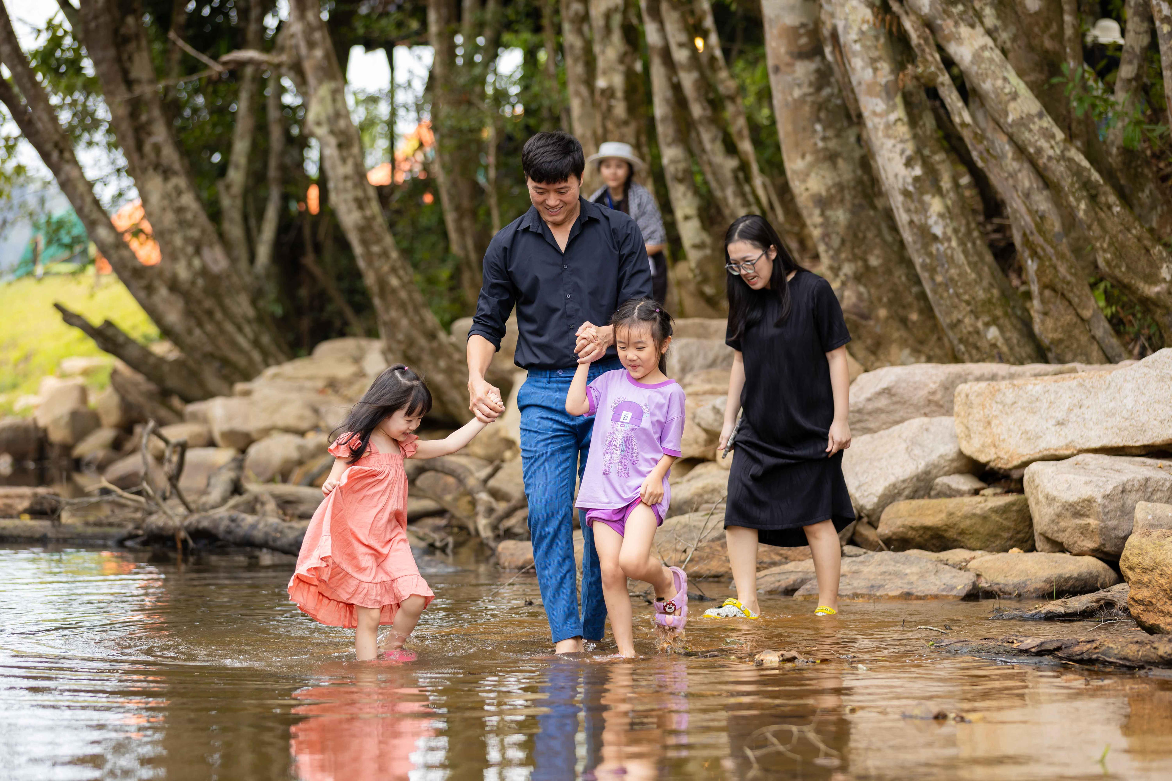 Quách Ngọc Tuyên và vợ con cũng tham gia trải nghiệm gần gũi với thiên nhiên. |