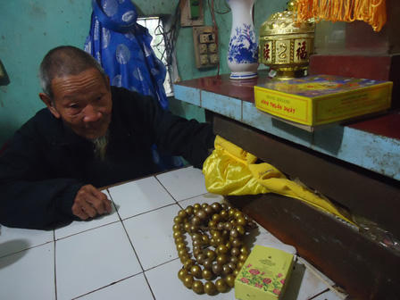 Ông Cà mỗi tháng phải thay áo cho “bà” một lần, đồng thời giặt giũ, cất giữ áo cũ ở nơi trang trọng nhất trong miếu là bàn thờ. Những người giàu niềm tin tâm linh còn sắm hẳn chuỗi hạt cườm lớn đeo lên đỉnh tượng đá để “làm đẹp”.