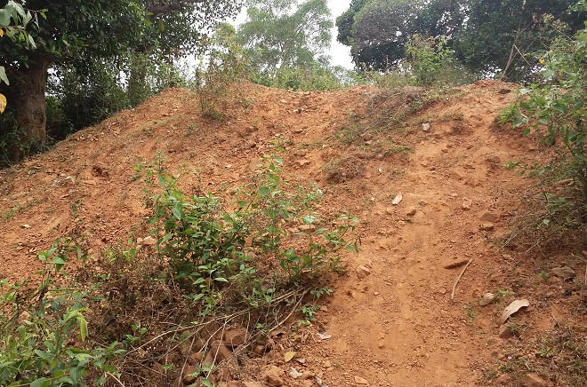 Theo quan sát, trên ngọn núi hình bát úp nhô lên giữa cánh đồng, dễ dàng thấy những đống gạch vụn, với đầy rẫy những hầm hố nham nhở, lớn nhỏ khác nhau sau các cuộc khai quật. Ở đây, một số vị trí được người dân đem bạch đàn đến trồng để phủ xanh phế tích.