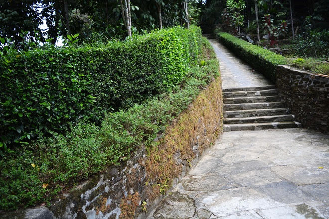 Không chỉ có kiến trúc, họa tiết độc đáo, ngôi nhà này còn được dựng trên khu đất có vị thế đắc địa về phong thủy. Đứng từ xa, ngôi nhà tựa lưng vào núi Gò Tròn, phía trước nhà là dãy núi Hòn Ngang làm bình phong che chắn. Bước qua ngõ đá rêu phong là vũng Trâu Lội - nơi gặp nhau giữa hai con suối nhỏ. Lên từng bậc cấp của ngõ vào nhà, một bên hàng chè tàu cắt tỉa thẳng tắp, một bên xếp đá, qua thời gian đã phủ rêu xanh ngắt, trông rất đẹp. Xung quanh khu vườn có nhiều cây xanh cổ thụ rợp bóng mát.