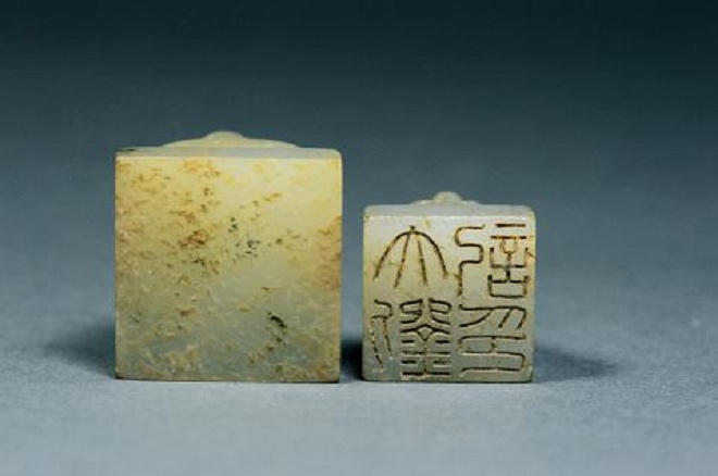 | Chiếc ấn ngọc bích và một cái ấn ngọc bích có tay núm hình rùa được tìm thấy ở quan tài ngoài của cổ lăng Lưu Hạ. Trên các ấn ngọc có khắc chữ “Lưu Hạ” chỉ đích danh chủ nhân là vương hầu Lưu Hạ. |