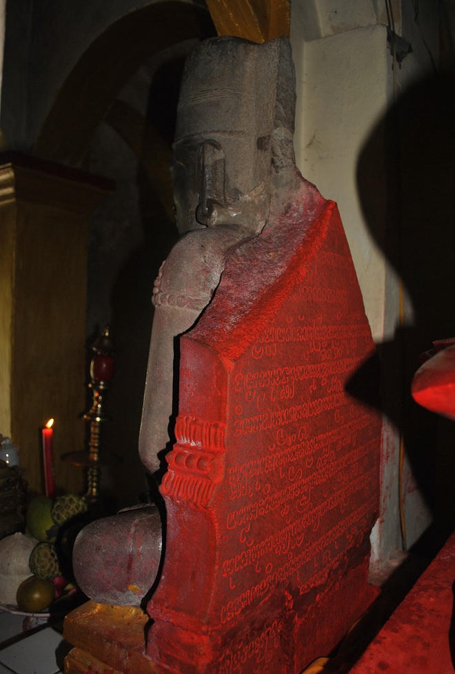Đại đức Thích Thị Hòa cho biết: “Bia ký của tượng thần Shiva ở chùa Linh Sơn là một bia ký dài, có nội dung và có niên đại cụ thể, được viết bằng chữ Chămpa cổ. Nội dung bia ký nói về vị vua Nauk Glaun Vijaya, vị vua này được nhắc tới là đã đánh thắng người Việt và chiếm được vương quốc Brah Kanda. Sau khi giành được nhiều chiến thắng, trở về Campa vào năm Saka-1343”.