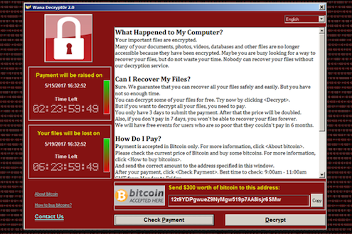 Hãng bảo mật Avast cho biết mã độc tống tiền có tên WannaCry đang lan rộng khắp thế giới, bao gồm Anh, Mỹ, Trung Quốc, Nga, Đài Loan hay Việt Nam... Hàng nghìn máy tính đã bị khóa và đòi 300 USD tiền chuộc thông qua Bitcoin.