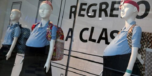 Một trung tâm mua sắm tại Caracas (Venezuela) đã trưng bày hai ma- nơ- canh học sinh “bụng bầu” gây sốc đối với người dân qua đường.