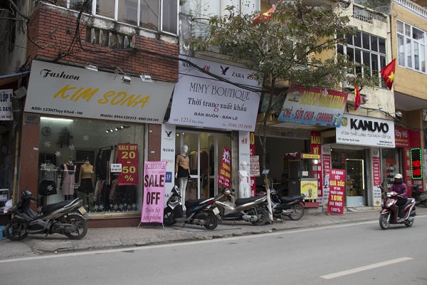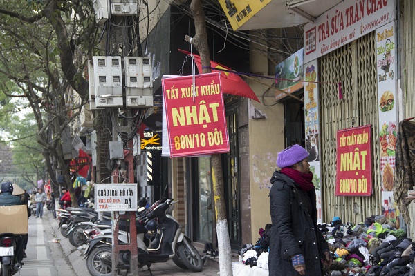 Tại Hà Nội, trên khắp các tuyến phố lớn nhỏ không khó để bắt gặp những tấm biển xả hàng, khuyến mại sale off các mặt hàng quần áo, giày dép, mỹ phẩm...