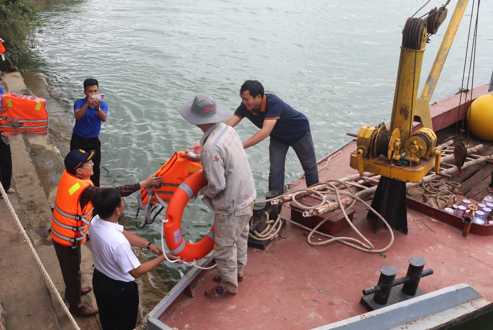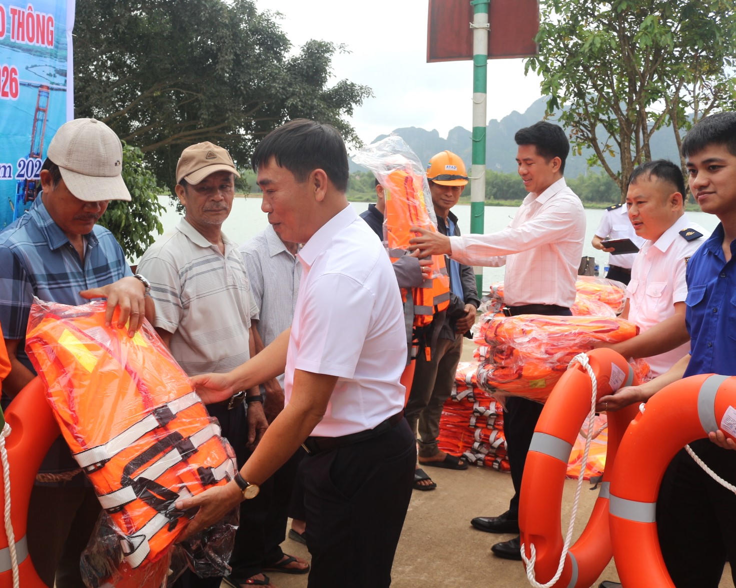Dịp này, nhiều áo phao cứu sinh đã được trao tận tay người dân xã Tuyên Hóa nhằm hỗ trợ bảo đảm an toàn khi tham gia giao thông đường thủy.