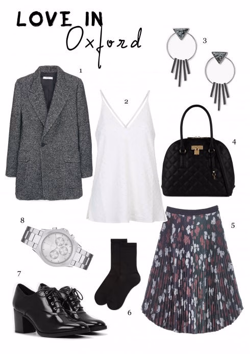 Lãng mạn như mùa thu nước Anh với váy midi xếp li, áo khoác blazer dáng dài và giày Oxford gót thấp. Hình ảnh quý cô trưởng thành đầy duyên dáng sẽ còn lãng mạn và tinh tế hơn nữa nếu kết hợp chung với nón fedora. Độ dài hợp nhất với áo khoác blazer phom dáng dày là độ dài ngang gối (hoặc ngang bắp chân)
