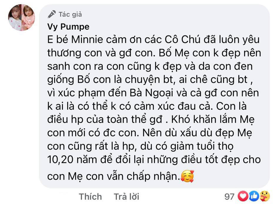 Sau vụ ồn ào không đáng có đó, Thảo Vy đã để lại bình luận dài như muốn “chốt” lại câu chuyện này. “Mẹ bỉm sữa” cho biết vô cùng đau lòng trước những ý kiến tiêu cực hướng về con.