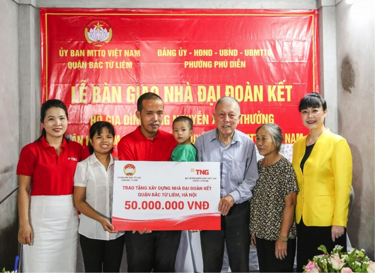 Căn nhà của bà Tự Thị Hương là một trong hai nhà đại đoàn kết được Tập đoàn TNG Holdings Vietnam trao tặng cho hộ cận nghèo tại huyện Bắc Từ Liêm (Hà Nội) trong năm nay. Trước đó, đầu tháng 10/2020, đại diện Tập đoàn đã trao tặng nhà đại đoàn kết cho gia đình ông Nguyễn Xuân Thưởng, thường trú tại phường Phú Diễn. Ở tuổi thất thập, vợ chồng ông Thưởng vừa vất vả mưu sinh lại phải chăm hai con khuyết tật, do vậy, ngôi nhà mới khang trang là cả giấc mơ mà gia đình ông không bao giờ dám nghĩ đến. Ông chia sẻ việc được trao tặng ngôi nhà mới là động lực to lớn giúp gia đình ông nỗ lực vươn lên trong cuộc sống.