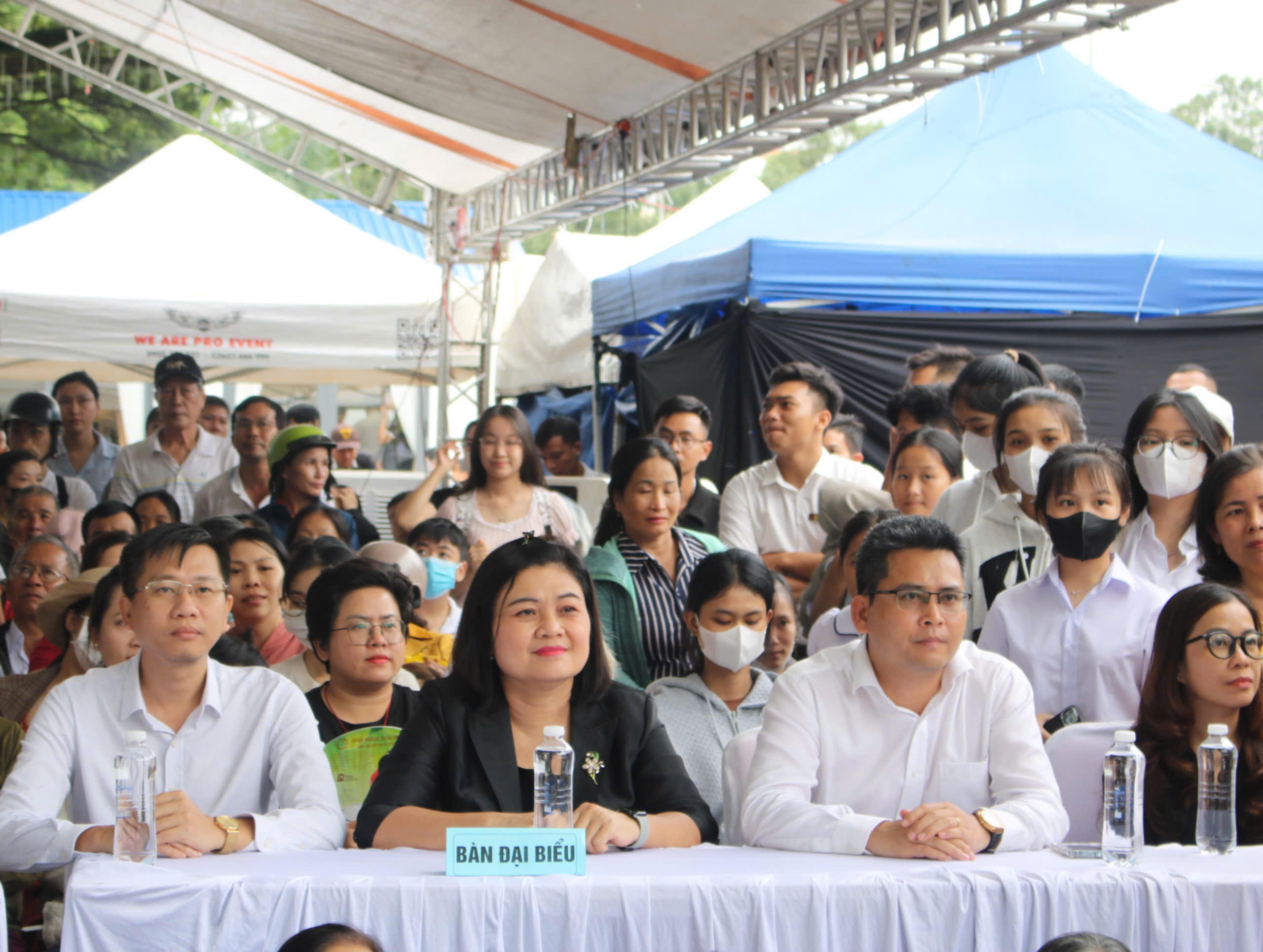 Bất chấp trời mưa nhưng khán giả vẫn đến để theo dõi chương trình và ủng hộ các gia đình có hoàn cảnh khó khăn. |