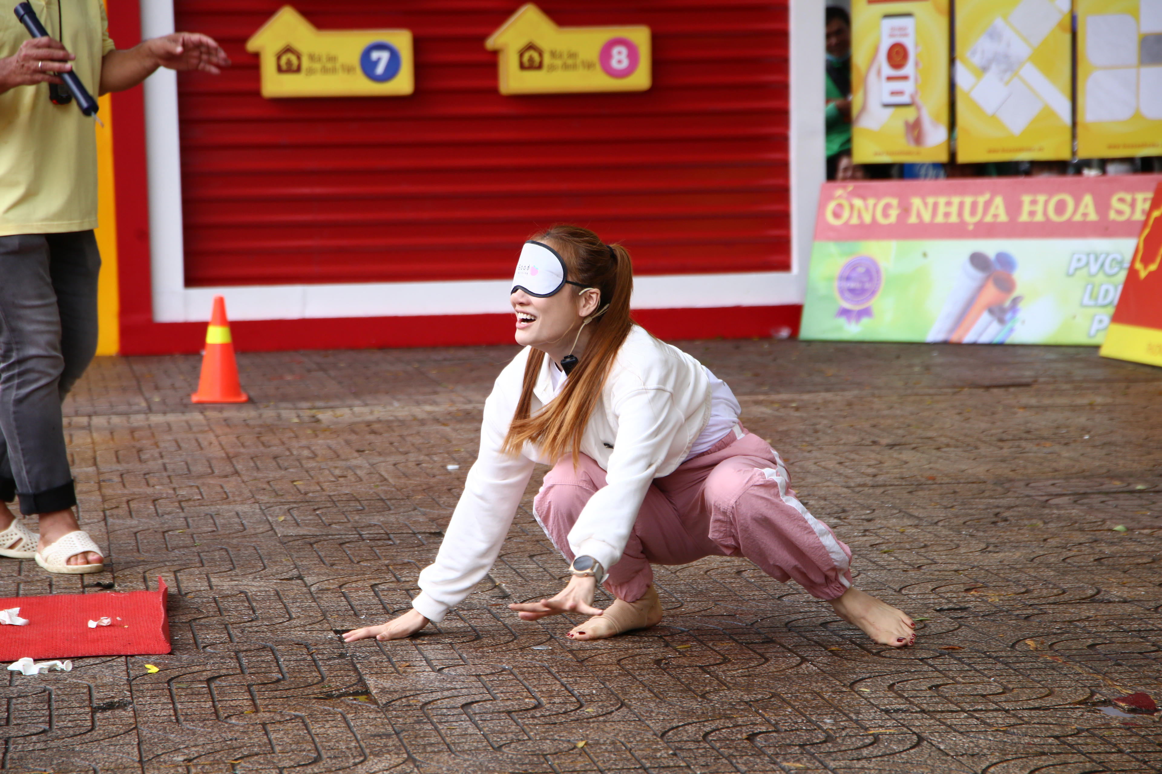 Diễn viên Nhã Phương hết mình “lăn xả” trong các thử thách của chương trình Mái ấm gia đình Việt. |