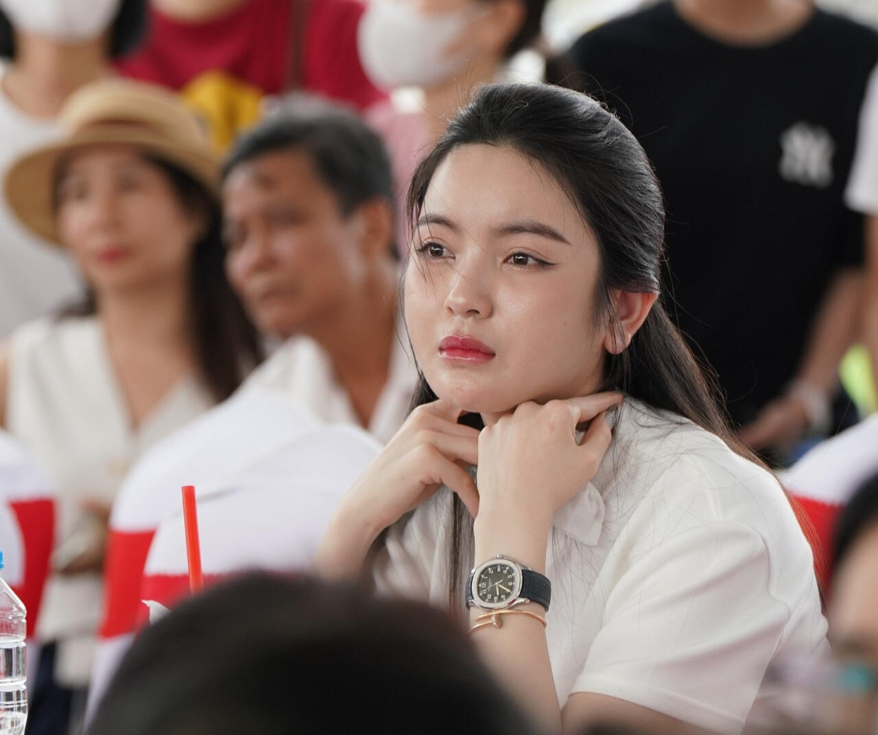 Bà xã cầu thủ Nguyễn Quang Hải đã có mặt từ sớm, theo dõi xuyên suốt câu chuyện của các gia đình trong chương trình. |