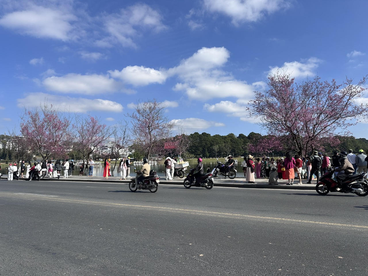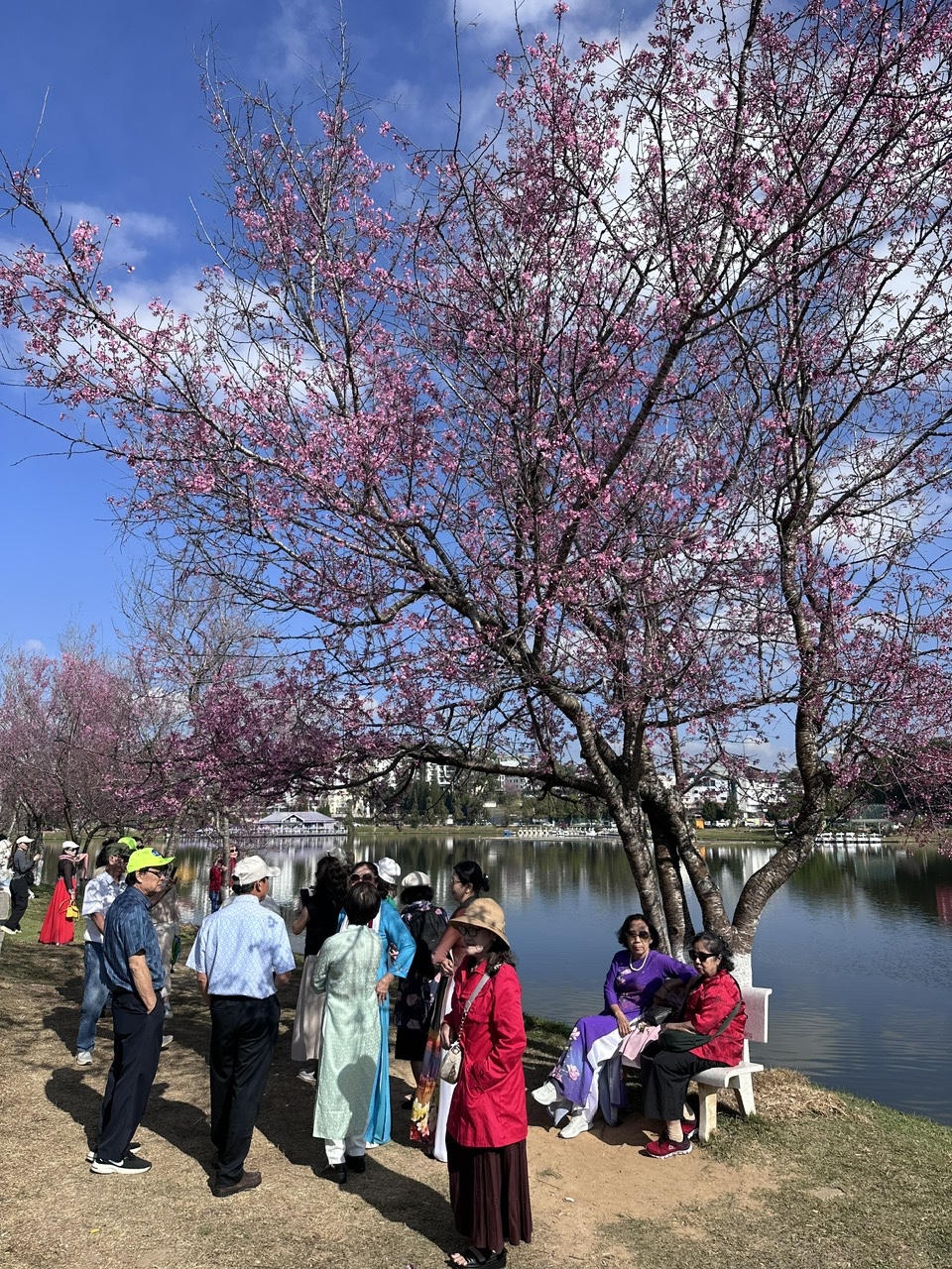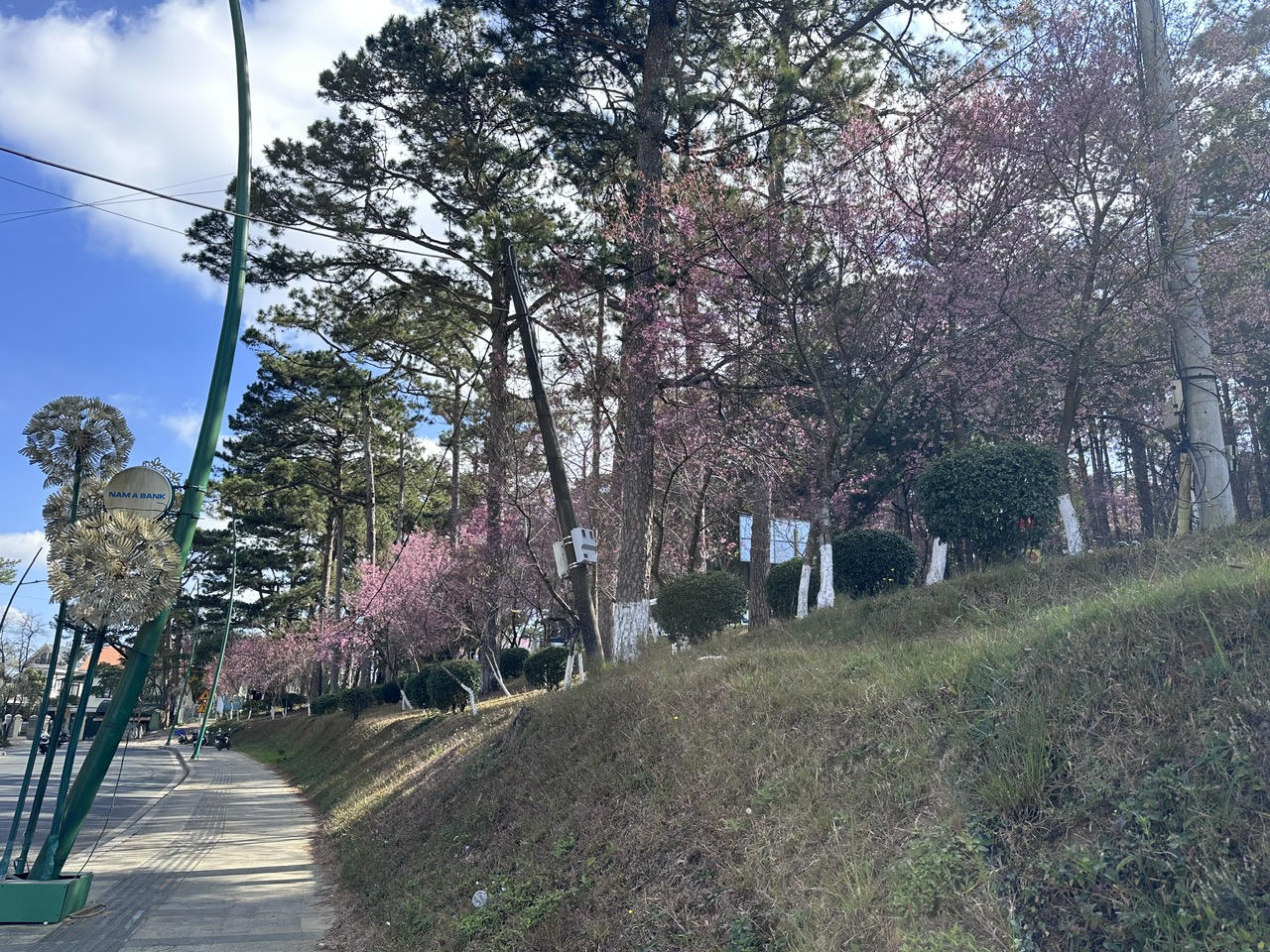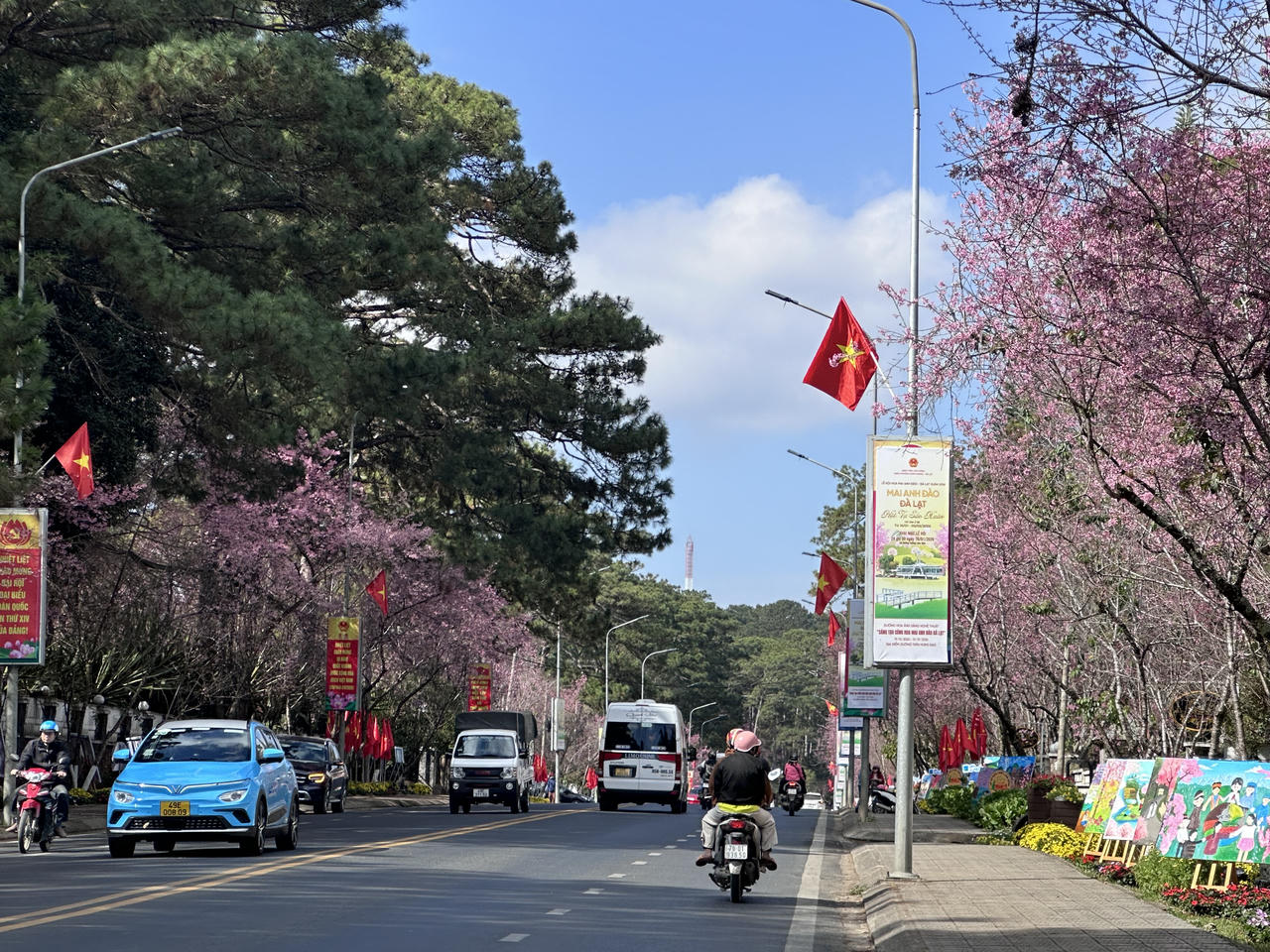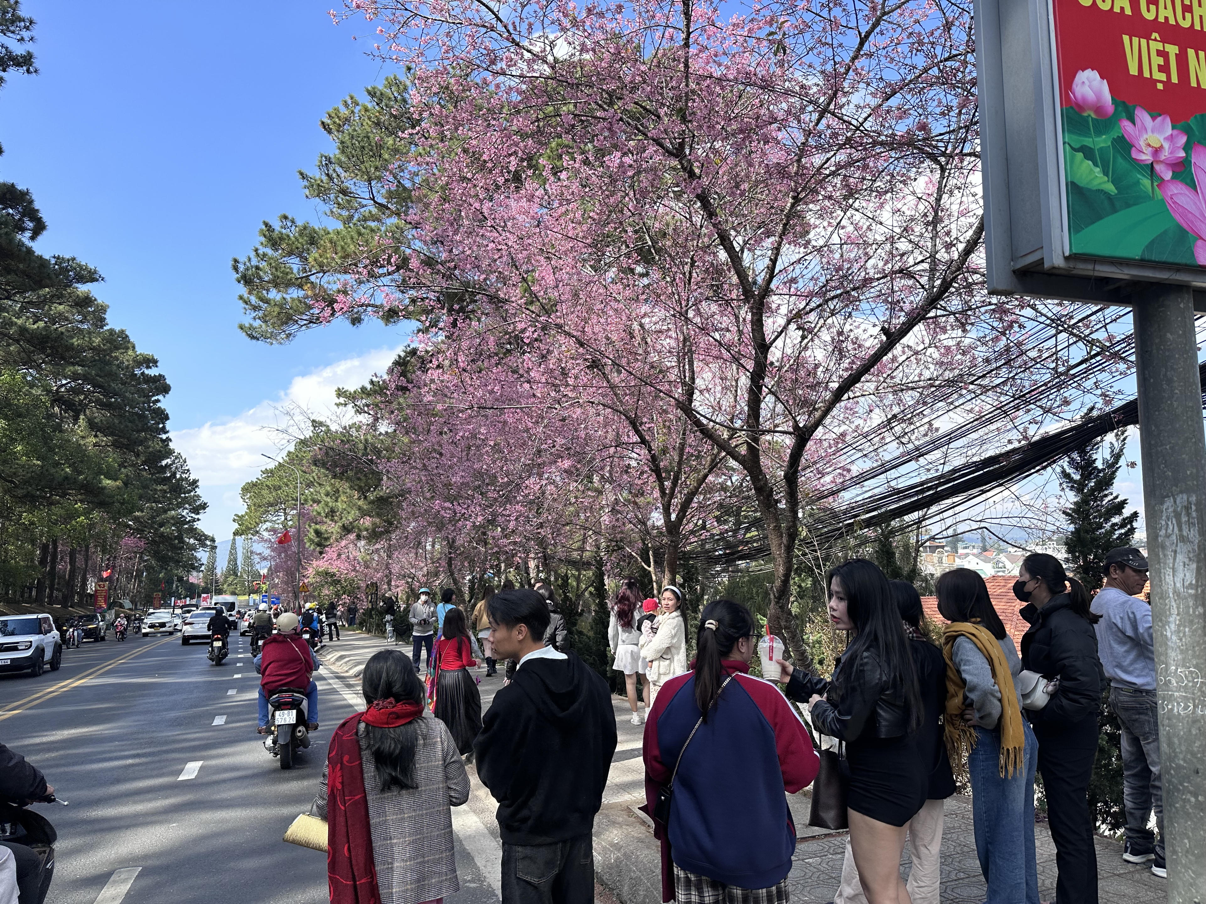 Thời tiết nắng ấm, mai anh đào trên nhiều tuyến đường trung tâm Đà Lạt (tỉnh Lâm Đồng) đã đồng loạt bung nở, tạo nên khung cảnh lãng mạn. Nhiều du khách tranh thủ những khoảnh khắc đẹp bên loài hoa này.