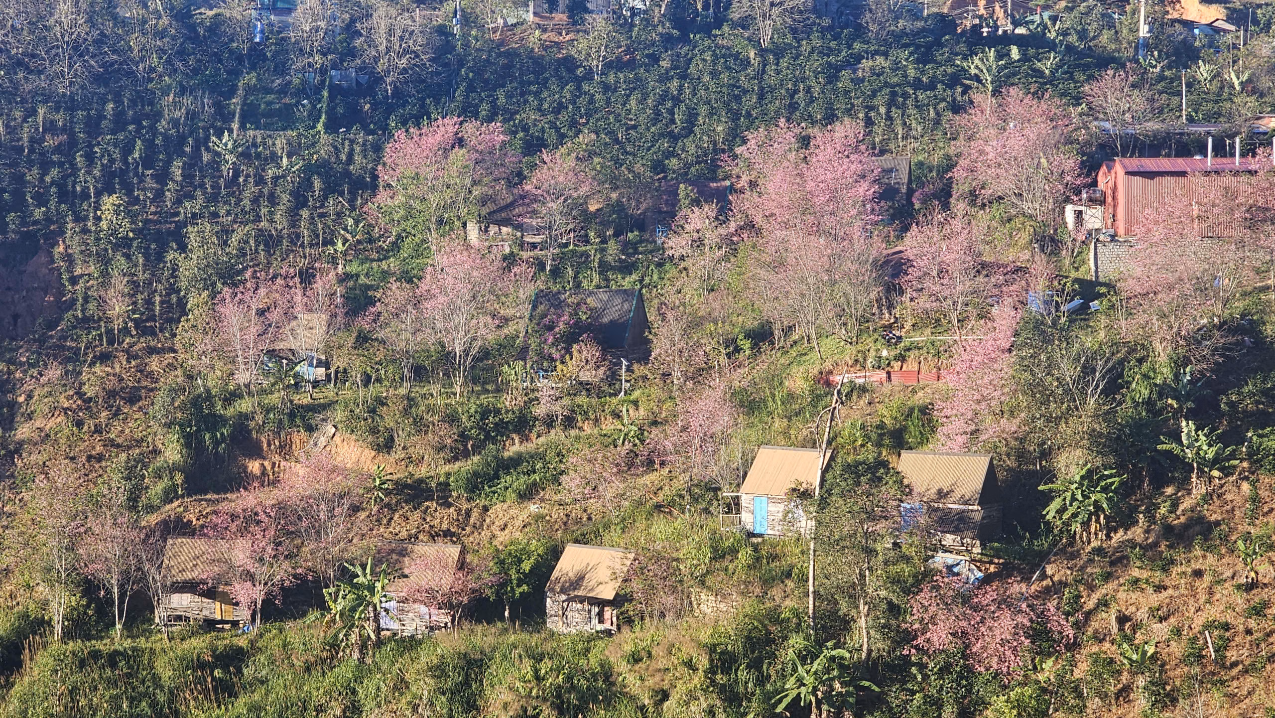 Mai anh đào “nhuộm hồng” phố núi, du khách nhộn nhịp check- in