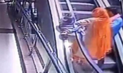 Bà mẹ để rơi con khi vừa đi thang cuốn vừa chụp ảnh. Ảnh: canalmaisvistas. |