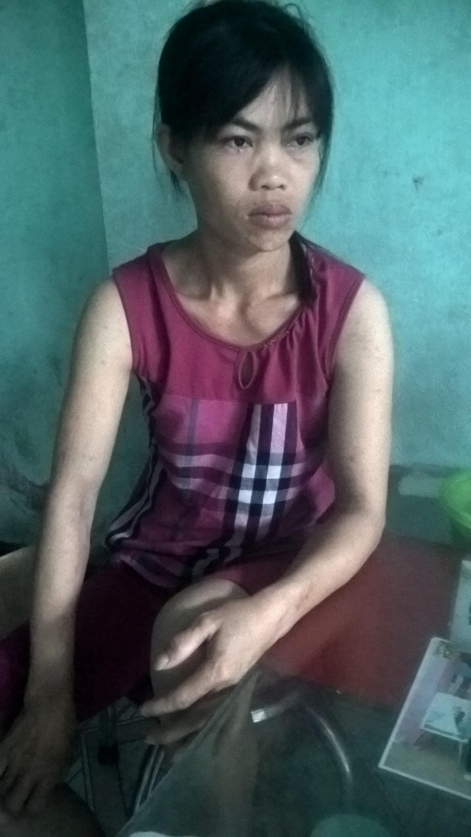 Căn nhà nhỏ xíu của nạn nhân nằm cạnh bờ sông. Trên chiếc giường chật hẹp, ánh mắt đờ đẫn, gương mặt tái xanh, làn da đen với mái tóc lởm chởm, người phụ nữ bị đánh ghen nói sau khi bị đánh, toàn thân mệt nhừ phải nằm liệt giường hơn 10 ngày.