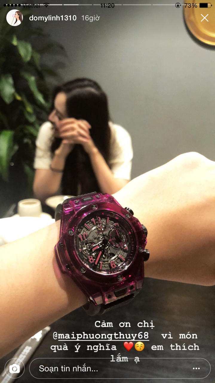 Chia sẻ trên Instagram cá nhân của mình, Hoa hậu Đỗ Mỹ Linh đã không giấu được hạnh phúc và bất ngờ khi nhận được chiếc đồng hồ thuộc phiên bản giới hạn của thương hiệu đình đám Hublot từ người chị là Hoa hậu Mai Phương Thúy.