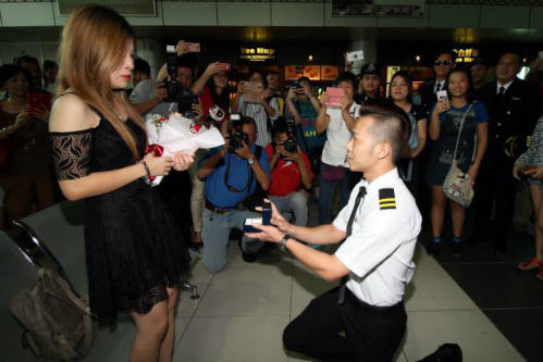 Đôi uyên ương gặp và yêu nhau cách đây 3 năm. Anh chàng Cheung đã mất tới 6 tháng chuẩn bị cho màn cầu hôn và chi 3.300 đô la (khoảng 75 triệu đồng). Cheung đã liên hệ với công ty tổ chức sự kiện, từ đó phối hợp cùng cảnh sát sân bay để dựng màn kịch này. Rất may cho anh chàng là mọi sự diễn suôn sẻ và anh cũng nhận được cái gật đầu của bạn gái.