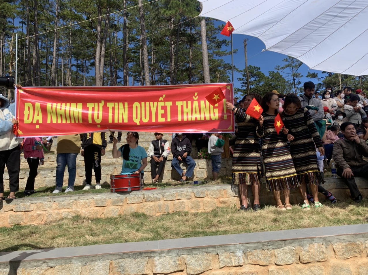 Băng rôn, khẩu hiệu của người dân cổ vũ cho ngựa đua xã Đạ Nhim. |