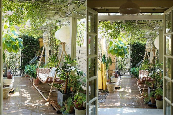 Trang chuyển đến sống tại ngôi nhà này đã được 4 năm. Điều cô yêu thích nhất ở nó chính là có một khoảng sân rộng rãi, lớn hơn rất nhiều so với căn hộ Trang từng ở trước kia. Đặc biệt, không khí lưu thông tốt và nguồn ánh sáng tự nhiên nhận được cả ngày giúp khoảng sân trước nhà trở thành một nơi lý tưởng để trồng cây xanh và hoa tươi.