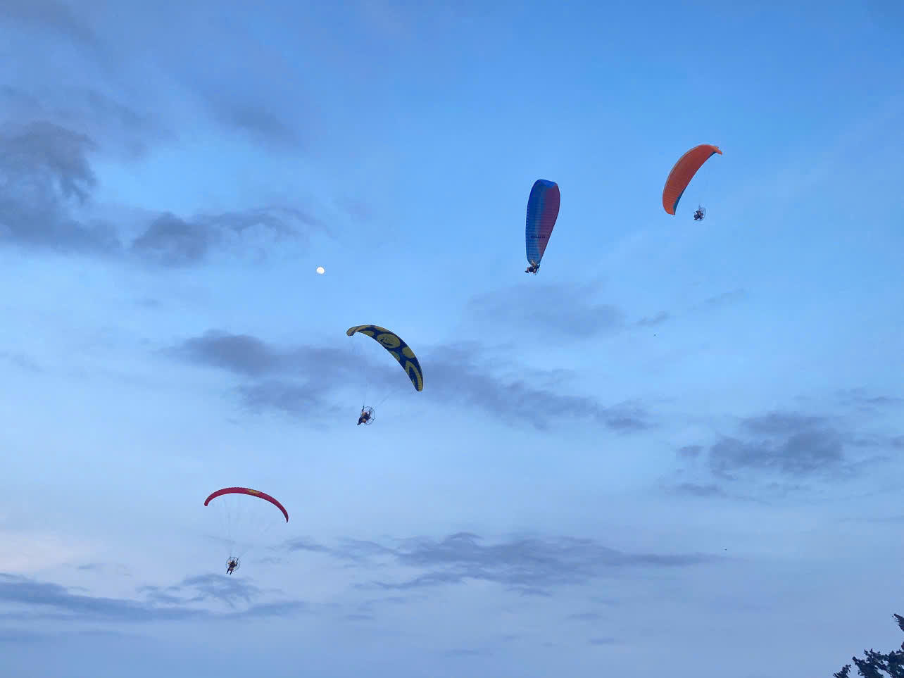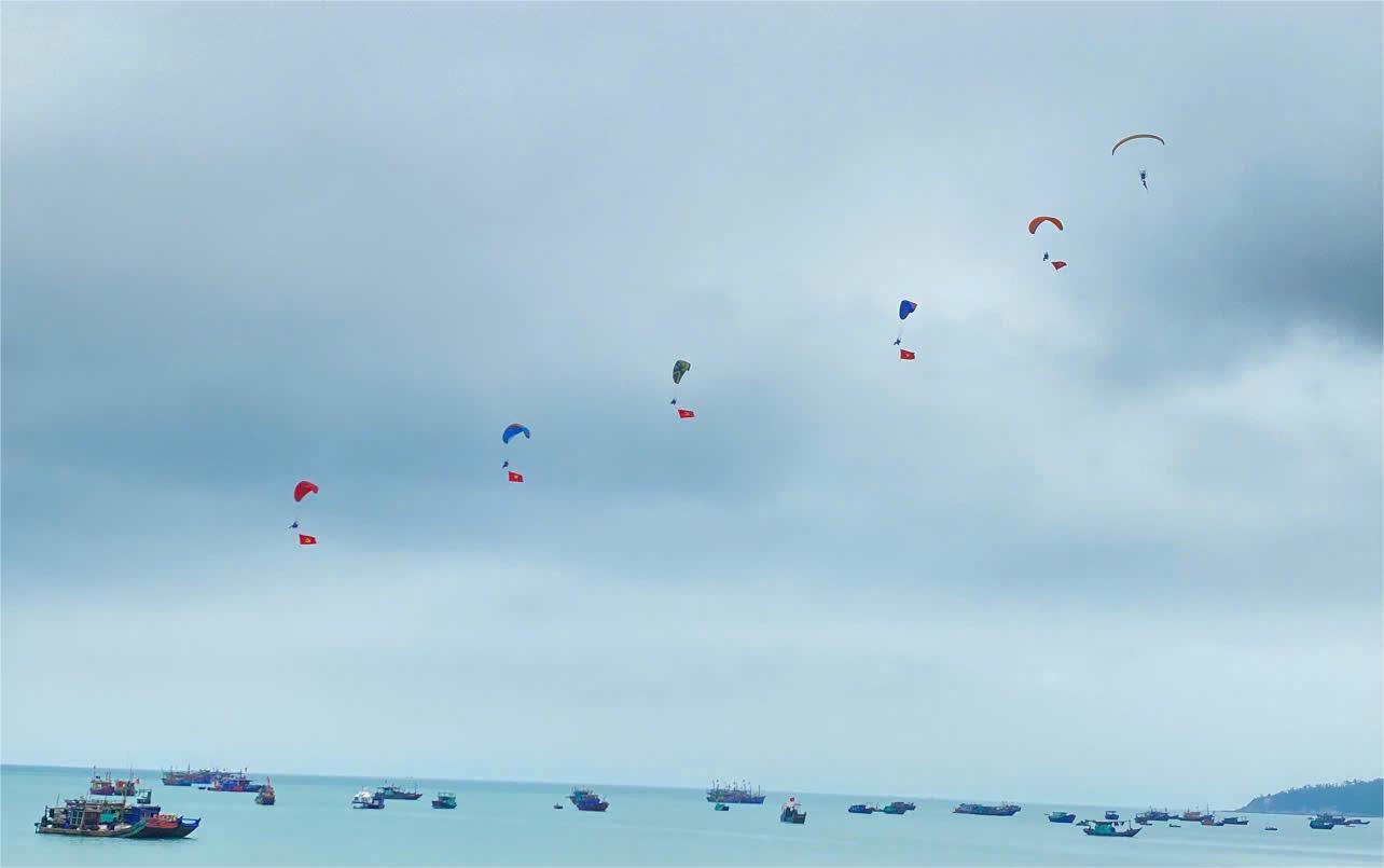 (PLVN) - Ngày 10/5, tại huyện Cô Tô (Quảng Ninh) diễn ra hoạt động trình diễn dù lượn. Đội hình trình diễn gồm 6 chiếc dù lượn gắn mô tơ mang cờ Đảng và cờ Tổ quốc tung bay trên biển trời Đông Bắc, khiến đông đảo Nhân dân và du khách thích thú, tự hào.
