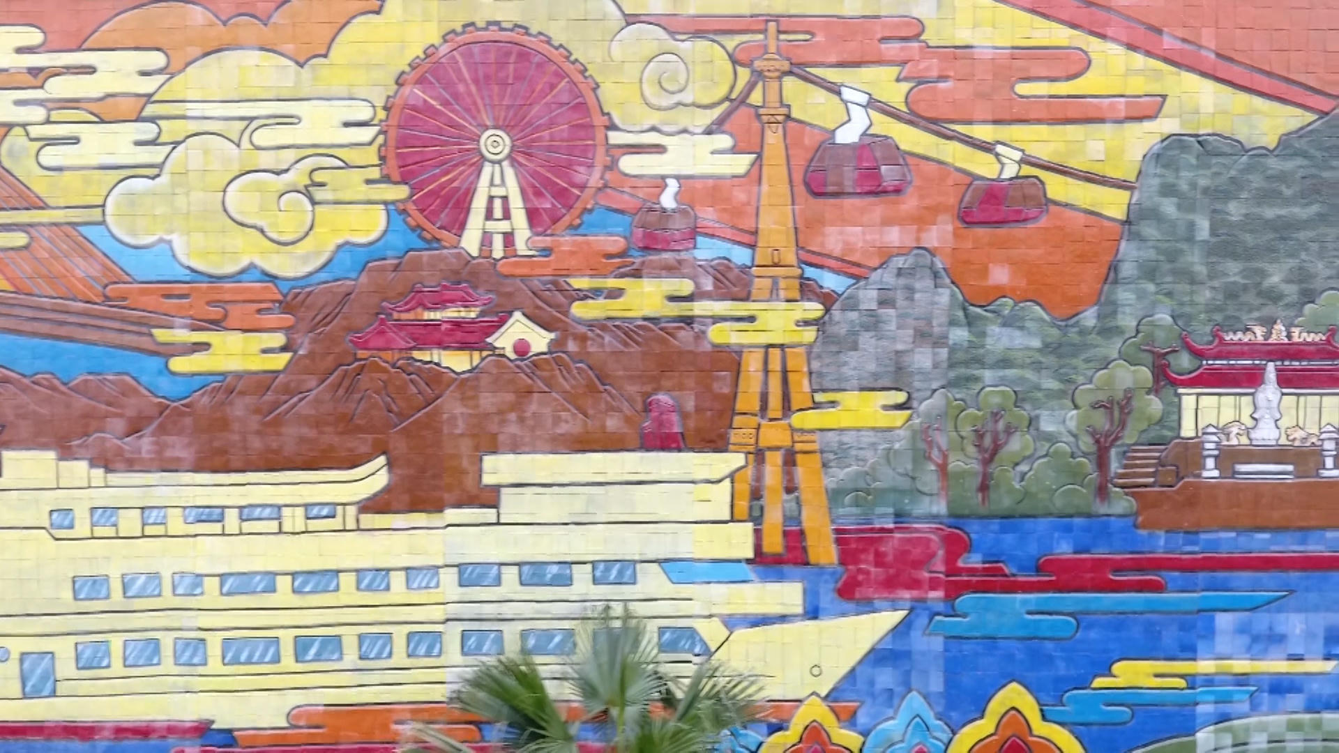 Nằm trên nền bức tường cao gần 10 mét dựng đứng tại nút giao thông 368, phường Bãi Cháy, bức phù điêu với chủ đề “Quảng Ninh- Di sản Việt Nam với di sản thiên nhiên thế giới" nổi bật, gây ấn tượng mạnh mẽ bởi những gam màu sắc rực rỡ, tươi sáng.
