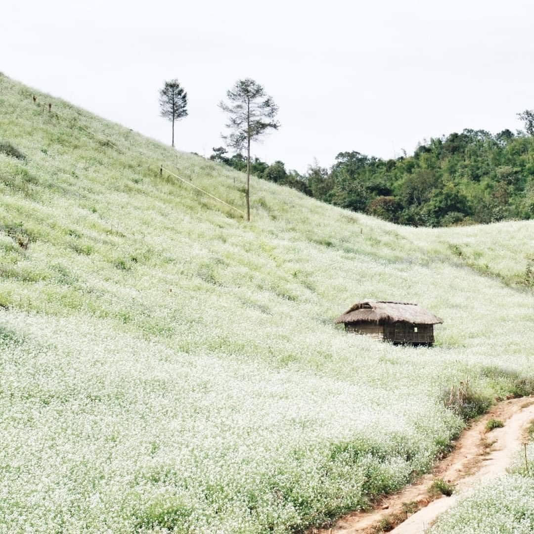Những bông hoa nhỏ xinh với sắc trắng mong manh, rung rinh trong gió nhẹ tô điểm thêm cho khung cảnh xứ cao nguyên.