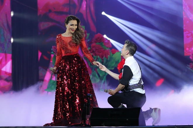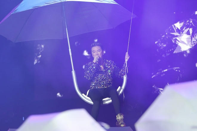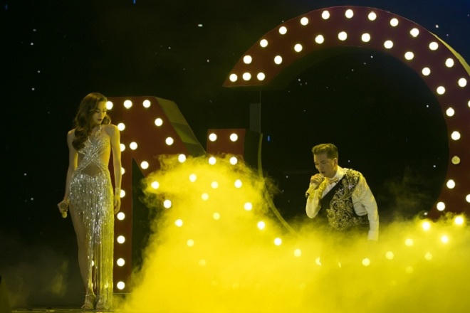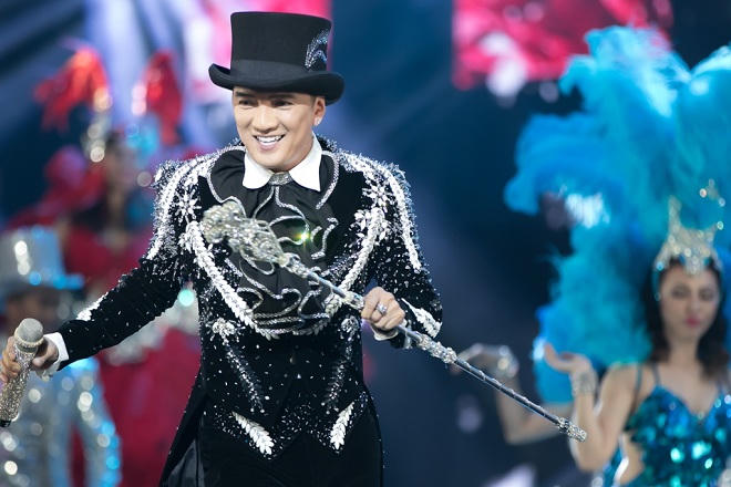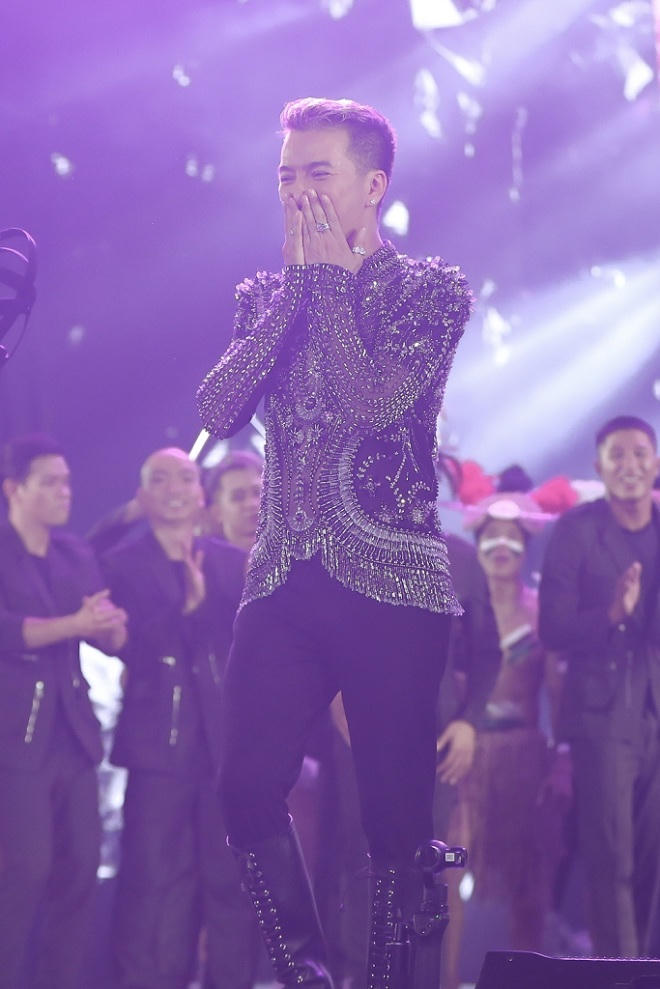 Mr Đàm bước ra từ viên kim cương được thiết kế cách điệu hoành tráng trên nền nhạc của ca khúc Quando Quando trước sự vỗ tay không ngớt của khán giả.