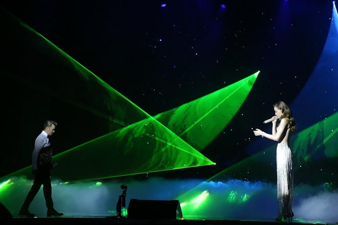 Ở tiết mục “Triệu đóa hồng”, Đàm Vĩnh Hưng và Hồng Ngọc diễn tả câu chuyện tình của chàng thi sĩ và nữ ca sĩ bên vườn hoa hồng nở đẹp mắt. Hay trong tiết mục “Bài ca tình nhớ” của Đàm Vĩnh Hưng và Hồ Ngọc Hà, 5 cây đèn laser tạo hiệu ứng ánh sáng bắt mắt khiến nhiều người phải trầm trồ.