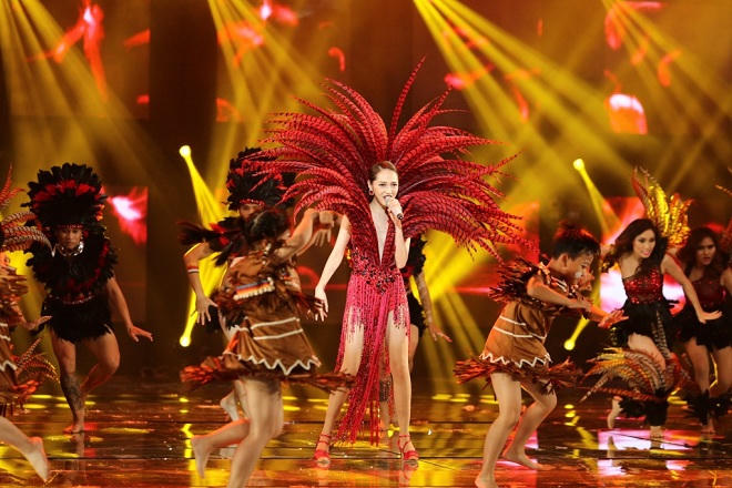 Không chỉ tập trung cho chủ nhân đêm nhạc, các tiết mục của khách mời cũng được đầu tư không kém với đại cảnh hoành tráng trong phần mở màn hay ca khúc “Baby one more time” của Thanh Thảo với dàn vũ công vài chục người trên sân khấu trong trang phục tiếp viên hàng không.