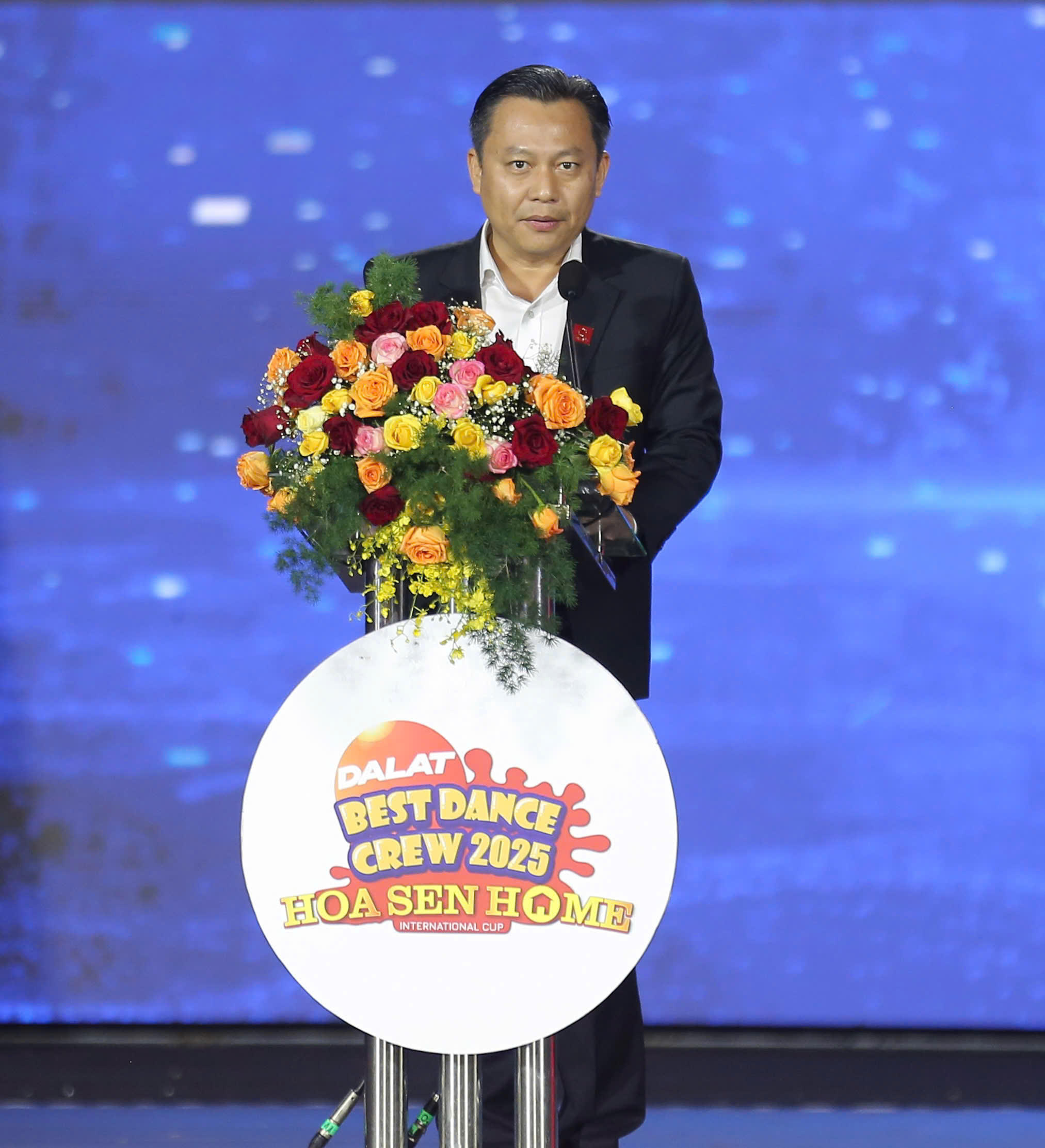 Bên cạnh đó, đại tiệc âm nhạc, vũ đạo còn có sự góp mặt của nhóm nhạc LUNAS và ca sĩ Jaykii. Ngồi ghế “nóng” đêm chung kết Bảng Quốc tế Dalat Best Dance Crew 2025 - Hoa Sen Home International Cup là 3 giám khảo quyền lực: biên đạo Việt Max, biên đạo Viết Thành và biên đạo quốc tế người Pháp Rochka Noel. MC Hoàng Rapper và MC Hoàng Kim là người “cầm trịch” chương trình.