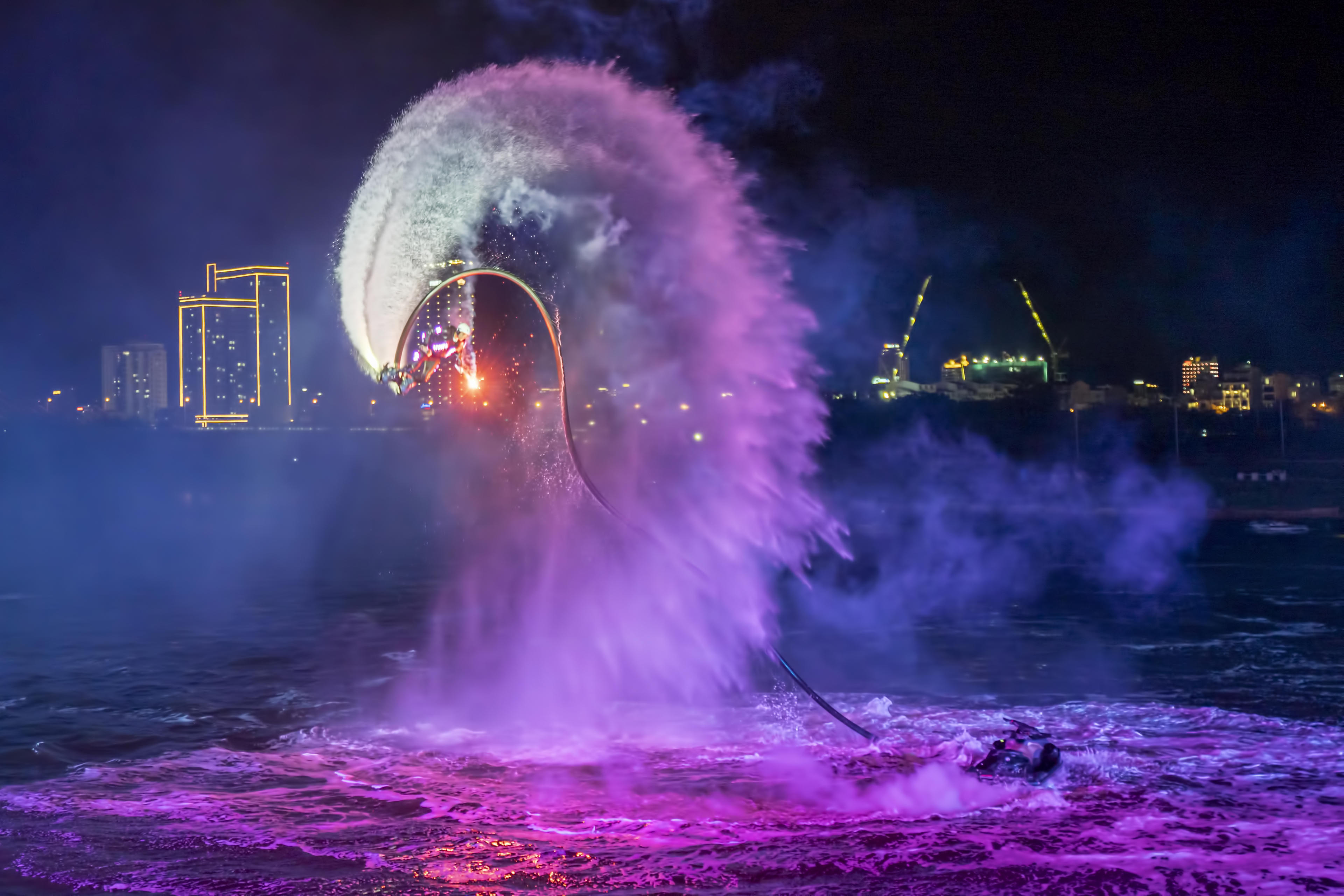 Vận động viên Jetski và Flyboards mang đến sự phấn khích và choáng ngợp trong phần trình diễn của mình. |