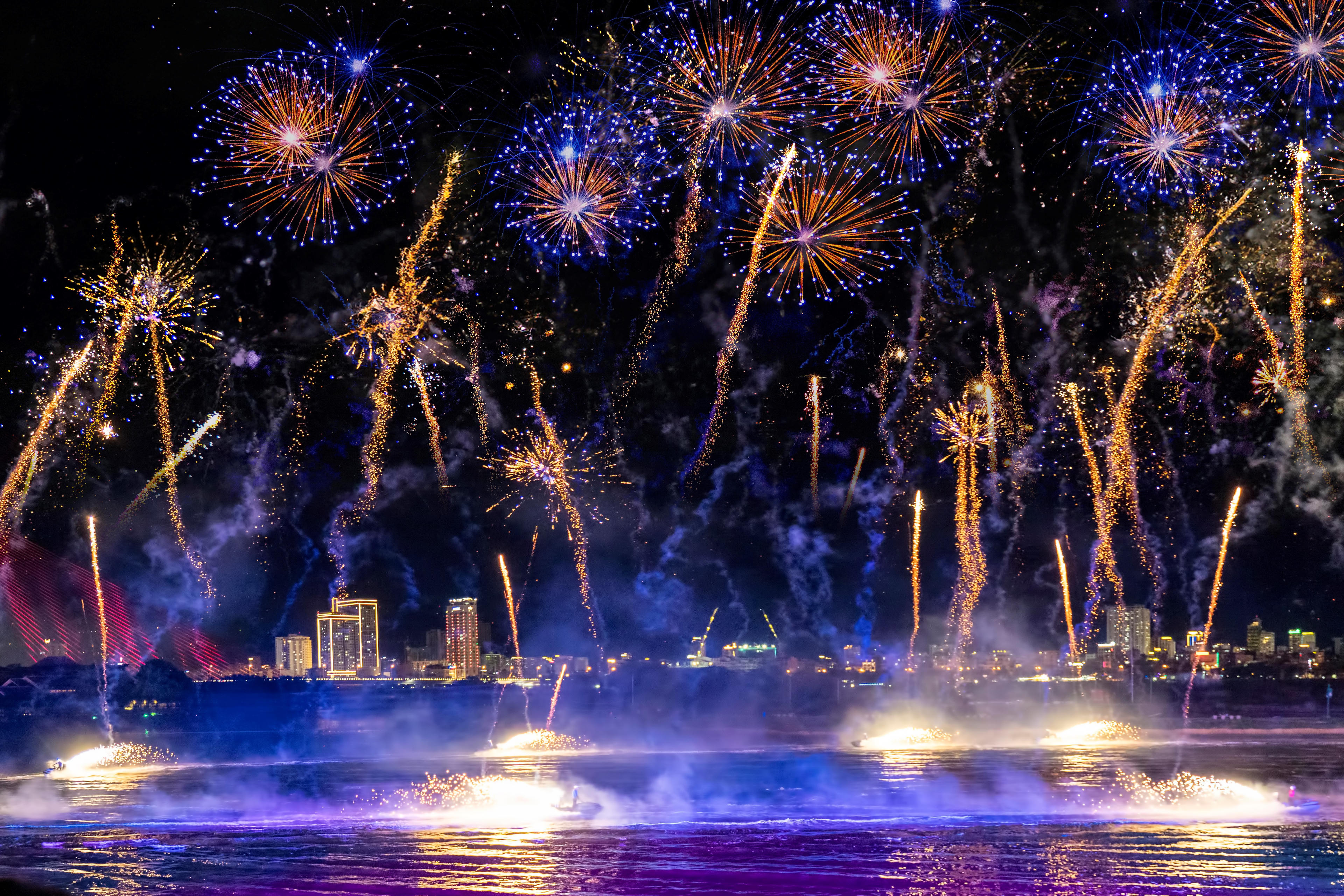 Những chiếc Jetski “xé” màn đêm bằng pháo sáng và những cú tăng tốc đầy mạo hiểm. |