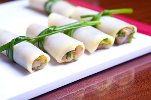 Măng cuốn nhồi thịt được trình bày bắt mắt khi hoàn thành. Ảnh: cafestyle