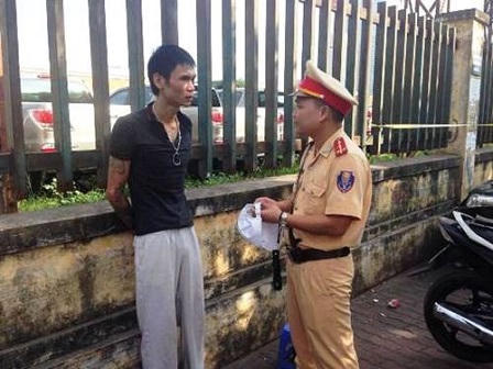 Tại đây, cảnh sát phát hiện một người đàn đi xe máy Yamaha Novo mang BKS: 30Z5 - 8279 có biểu hiện nghi vấn nên ra hiệu dừng xe kiểm tra hành chính.
