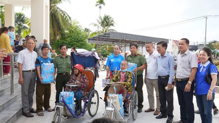 Theo đó, Công ty Tân Hiệp Phát phối hợp cùng báo CATP, Hội Phụ nữ Công an TP HCM, Công an Tiền Giang, Công an Bến Tre, Sở LĐTBXH Bến Tre trao tặng gần 200.000 sản phẩm nước tinh khiết đóng chai và 620 khối nước ngọt cho người dân các xã của tỉnh Bến Tre và Tiền Giang.