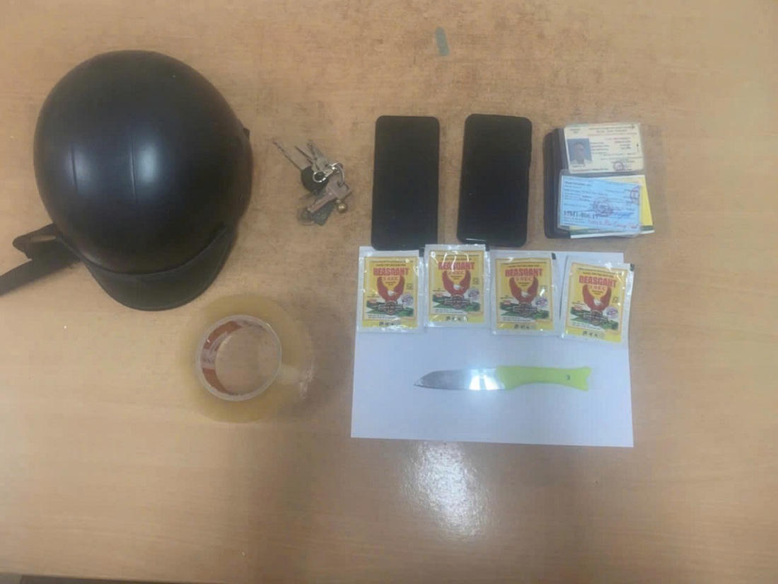 Tang vật thu giữ 1 con dao, 4 gói thuốc trừ sâu; 3 ĐTDĐ; 1 xe máy và các vật chứng có liên quan.