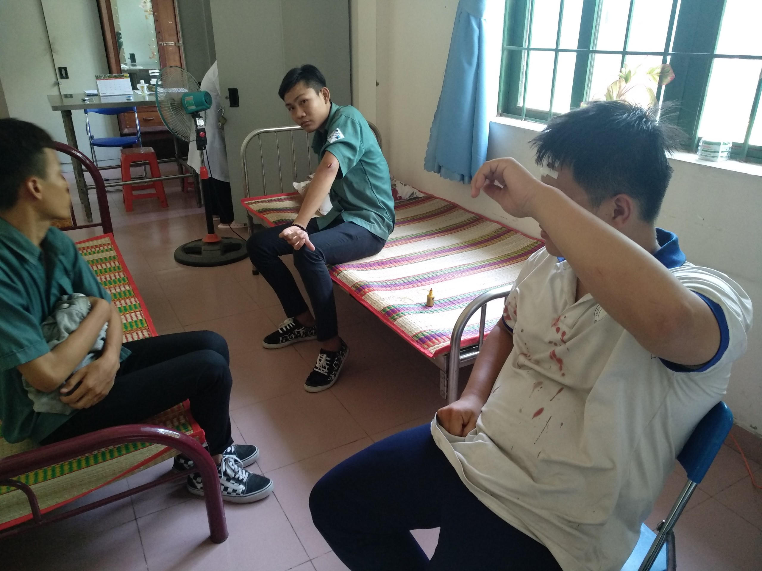 Cô Đoàn Thị Cúc, Trưởng phòng Công tác học sinh, sinh viên cho hay, các đối tượng đã trèo qua bờ rào (nhà trường đang xây) vào hành hung hai học viên Cơ và Long.
