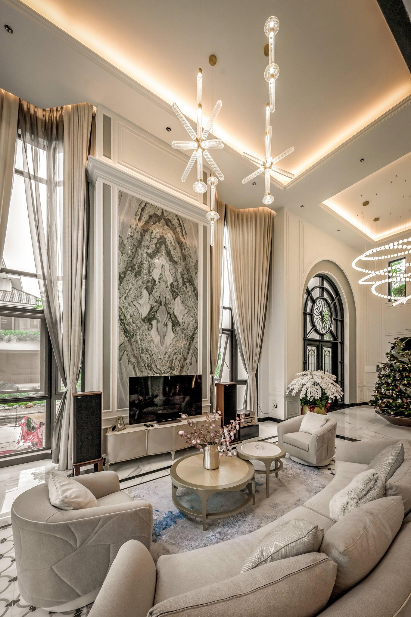 Căn villa mang phong cách Tân Cổ điển – Neo Classic do kiến trúc sư Thu Trang (TP. Hồ Chí Minh) thiết kế, thi công dựa trên kết cấu cũ của căn nhà, được thực thi và hoàn thiện trong vòng 6 tháng vừa kịp để cho gia chủ đón mừng Giáng sinh.