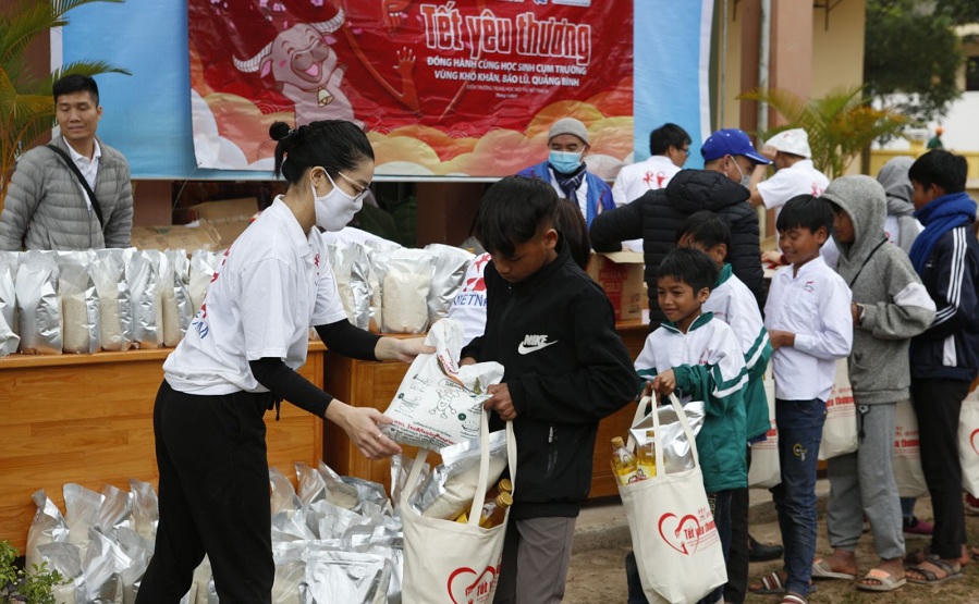 Trong đó, mỗi suất quà tết cho các em học sinh dân tộc bao gồm: nhu yếu phẩm, bánh mứt kẹo, quần áo, bút và phong bao lì xì 500.000 đồng/em. 70 suất quà Tết tặng giáo viên gồm: bánh mứt Tết, nhu yếu phẩm và mỗi suất 400.000 đồng tiền mặt.