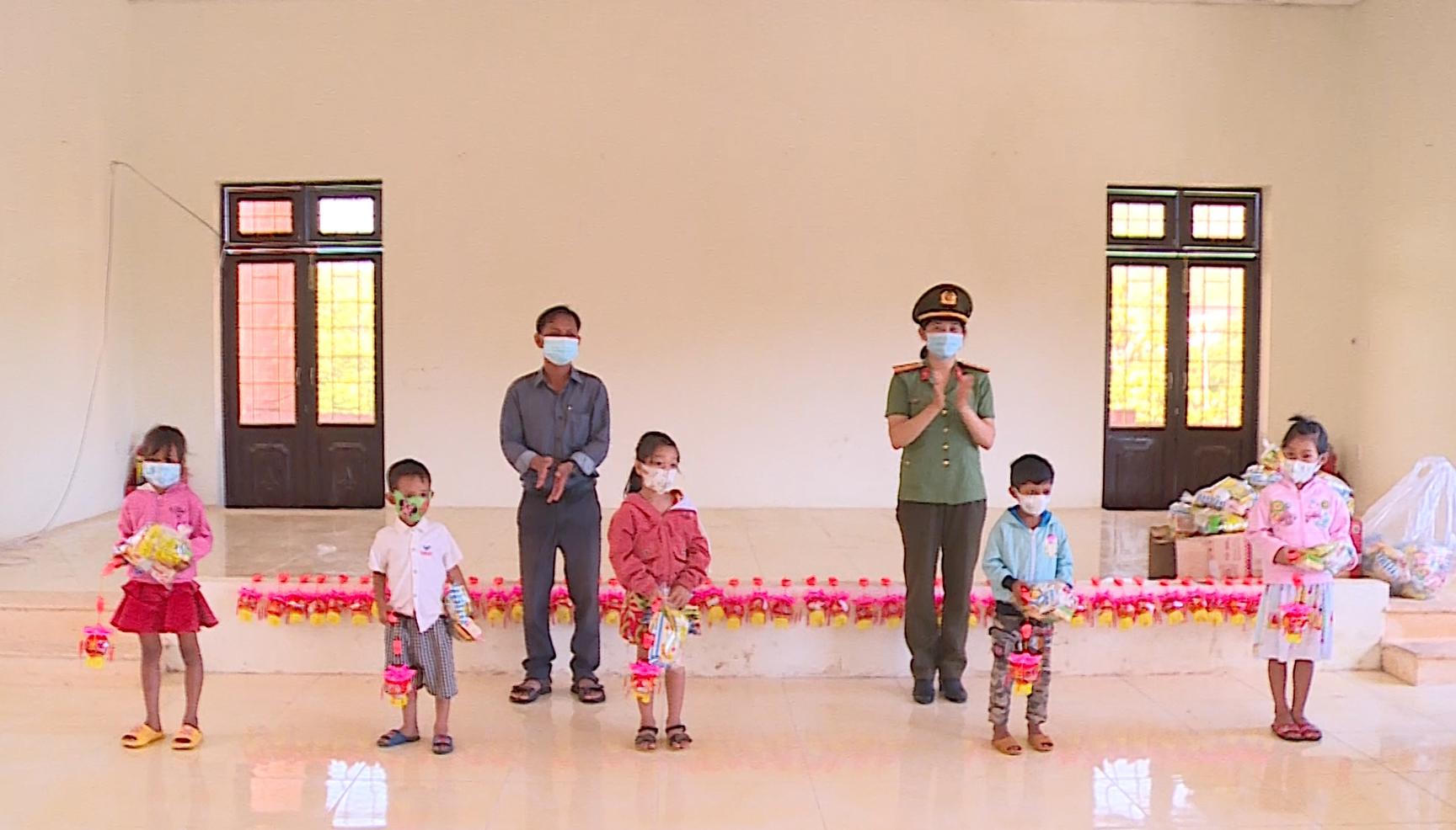 Đoàn thanh niên và Hội phụ nữ Công an tỉnh Quảng Ngãi tặng quà trung thu cho các em nhỏ ở khu cách ly tập trung y tế. |
