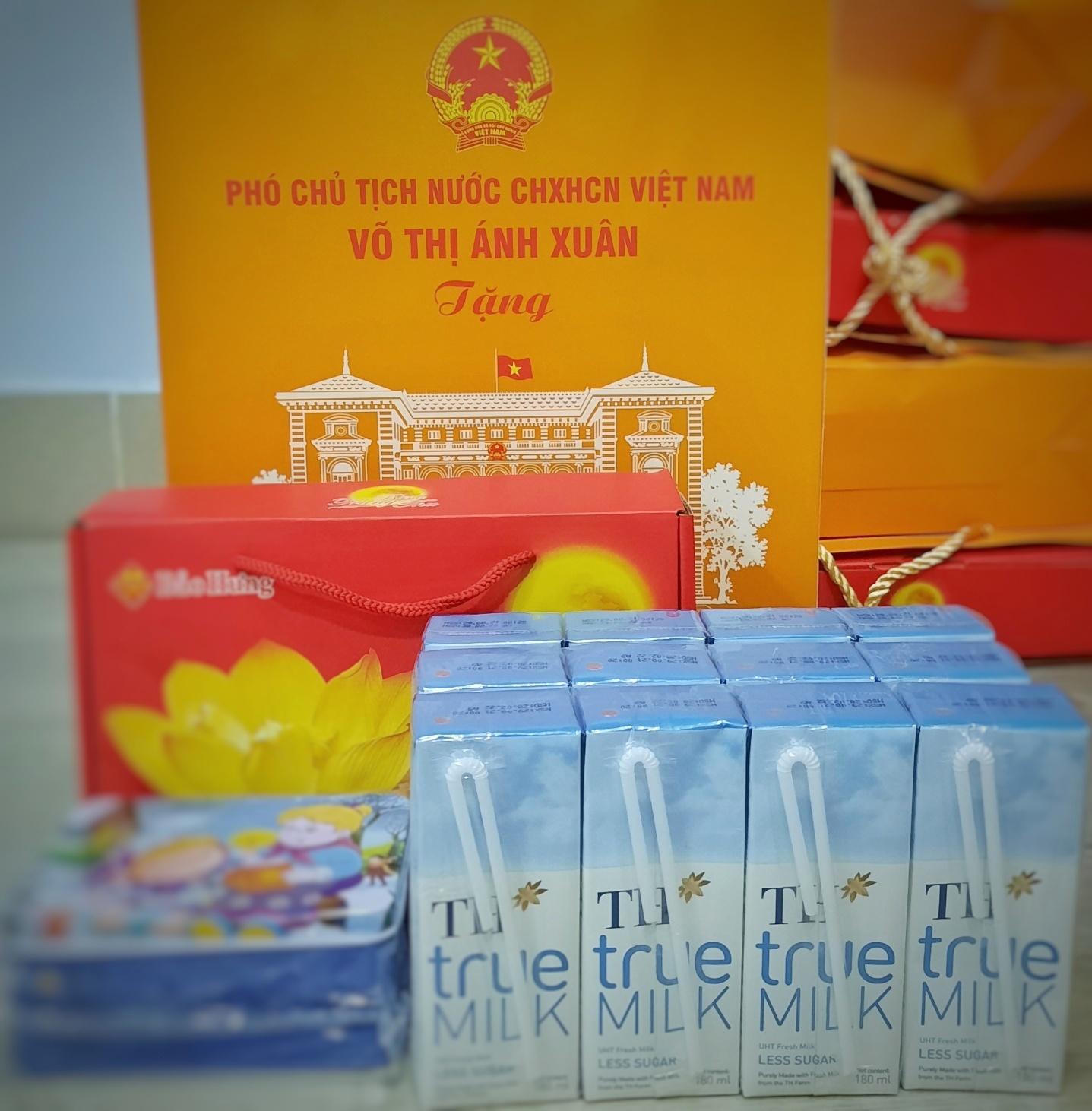 Những phân quà gồm bánh Trung thu và sữa tươi TH true MILK do Tập đoàn TH cùng Ngân hàng TMCP Bắc Á và Quỹ Vì Tầm Vóc Việt gửi tặng tại Bệnh viện Nhi đồng Thành phố (huyện Bình Chánh, TP HCM). |