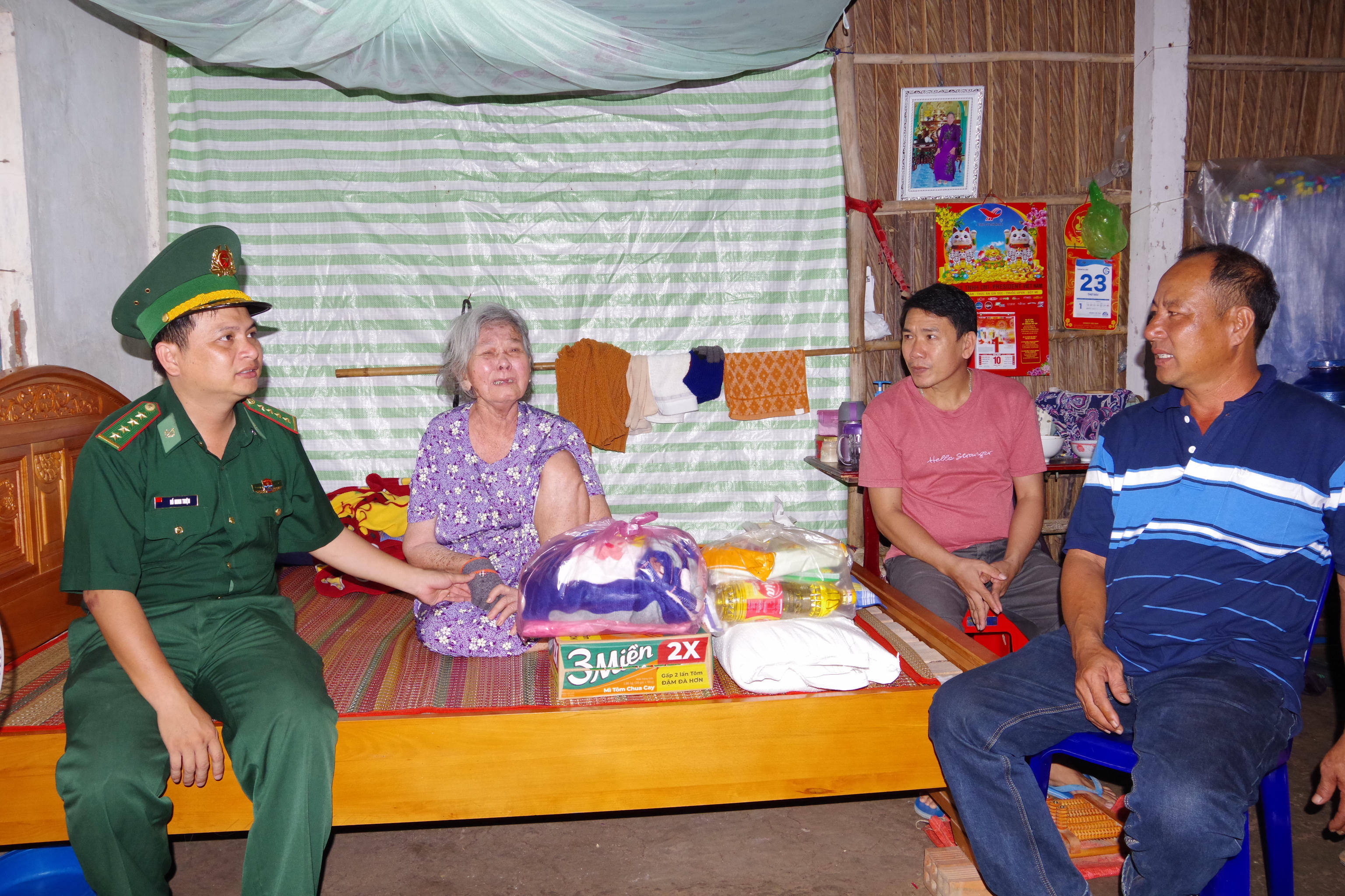 Lãnh đạo Đồn Biên phòng Vĩnh Hải đến tận nhà trao quà tết cho người già có hoàn cảnh khó khăn trên địa bàn xã Vĩnh Hải |