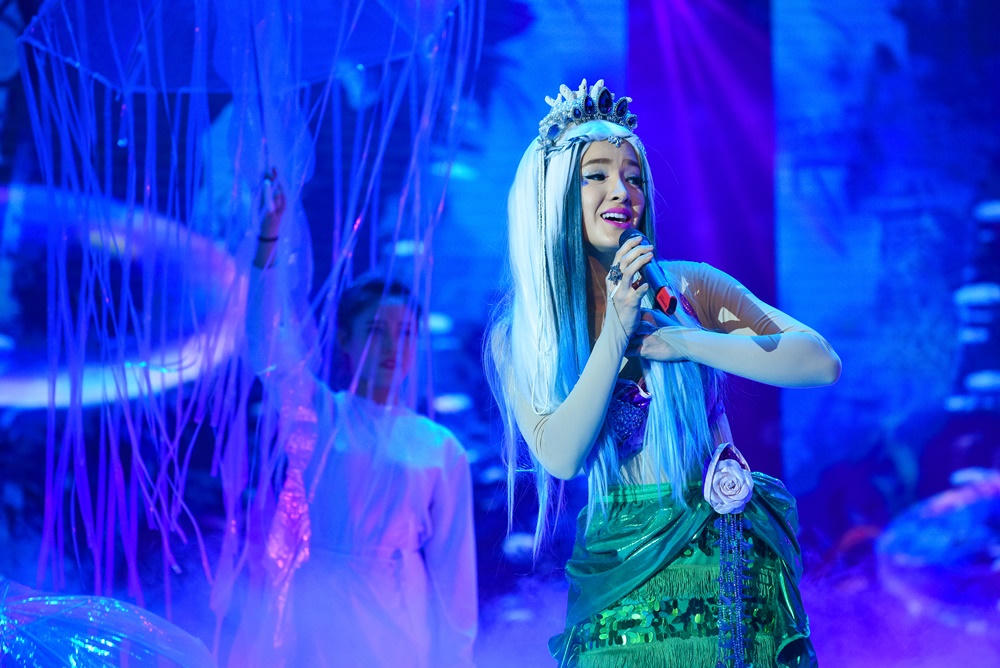 Phương Trinh Jolie hóa trang thành nàng tiên cá đẹp lộng lẫy khiến cho giám khảo - ca sĩ Ngọc Ánh phải thốt lên: “Em đẹp quá, Phương Trinh ơi! Chị xem tiết mục này mà giống như đang xem một bộ phim, rất thích thú!”.